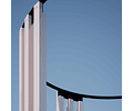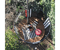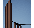 La altura de la estructura es de 2,4mts, y tiene la base un diámetro de la circuferencia de 2,9mts. Su materialidad es de Acero y Madera, 100% diseñado y producido en el país.