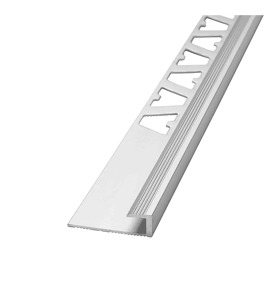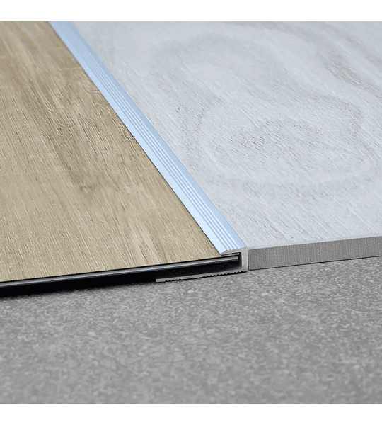 Perfil de aluminio diseñado para crear transiciones seguras entre pisos vinílicos de 5 mm de espesor o superior en el mismo nivel y proteger el canto de las placas. Puede utilizarse como terminación en paredes y muros a 90 grados.