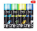 Rex Air Re-fresher en sus 4 diferentes aromas, es un spray eliminador de olores y aromatizador de automóviles.